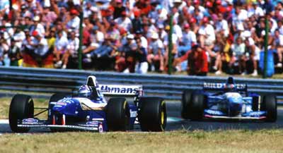 "Гран-при Венгрии 1995". Деймон Хилл впереди Михаэля Шумахера.