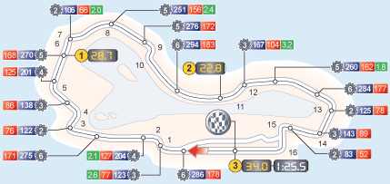 Трасса довольно требовательна к моторам, по нагрузке на двигатель она уступает лишь Монце - 60% круга гонщики проезжают нажав педаль газа до упора. Разумеется сказывается и разница в климате, по сравнению с холодными европейскими трассами, на которых проходят зимние тесты. Часто причиной схода служит банальный перегрев мотора. Впрочем, в этом году прогноз погоды обещает умеренную температуру, хотя на трассе наверняка будет жарко.