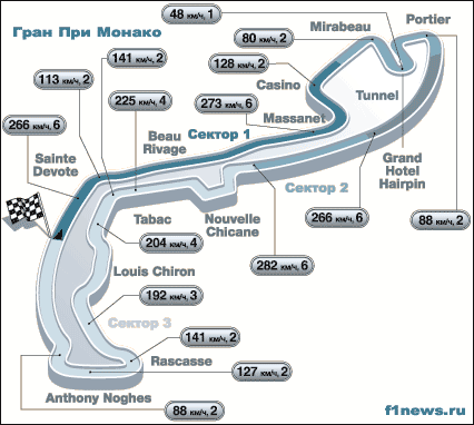 Это самая медленная трасса чемпионата. В Монако нужна мягкая, но стабильная резина, ведь задние шины подвергаются серьезной нагрузке из-за постоянных разгонов. Разница между лучшим кругом и полным провалом не толще папиросной бумаги, здесь все обязаны рисковать. Обычно команды настраивают машины на максимум прижимной силы. В Монако практически невозможно обгонять, а состояние трассы улучшается с каждым кругом, так что большое значение имеют не только результаты квалификации, но и порядок выезда пилотов на субботнюю сессию.