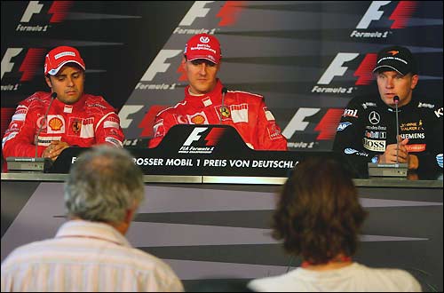 Михаэль Шумахер: Вы красиво расставили числа! Все это здорово, но важнее всего то, что сейчас я отстаю всего на 11 очков от Фернандо. Превосходный уик-энд, перед этой гонкой мы провели очень полезные тесты, и сегодня машина выглядела великолепно. Команда активно работала с инженерами Bridgestone, чтобы разобраться в ситуации, понять ее до последней мелочи. Мы улучшили машину, компания Shell подготовила свои новинки, и сегодня Ferrari добилась успеха. Я удивлен величиной преимущества, но почему бы и нет? Наше отставание в чемпионате удалось сократить очень вовремя, превосходный уик-энд!