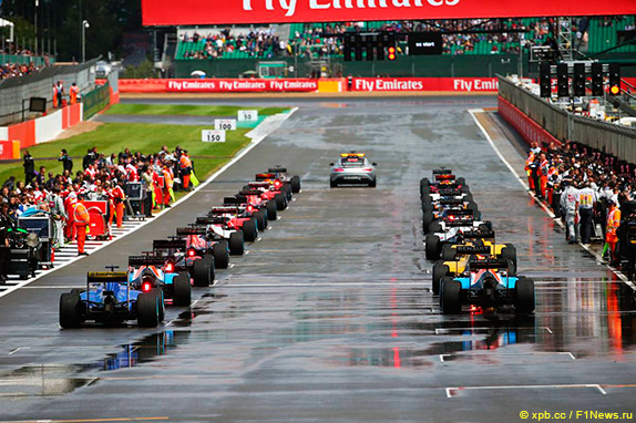 Прошлогодний Гран При Великобритании мог получиться относительно скучным, но своё слово сказала погода. Прямо перед стартом в Сильверстоуне прошёл короткий, но сильный ливень, не оставивший пилотам иного выбора, кроме как стартовать на дождевой резине, а дирекция гонки решила, что произойти это должно за автомобилем безопасности.