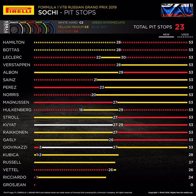 После финиша Гран При России пресс-служба Pirelli опубликовала информацию о порядке смены шин на дистанции...