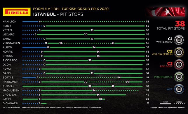 После финиша Гран При Турции пресс-служба Pirelli опубликовала информацию о порядке смены шин на дистанции...