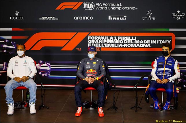Вопрос: (Кристиан Ниммерволль) Вопрос ко всем, начиная с Макса. Макс, когда перед рестартом вы выехали в гравий, думали ли вы о том, что Шарль Леклер имеет полное право вас обогнать? Ранее по ходу гонки Серхио Перес выехал за пределы трассы, его обогнали двое гонщиков, и никого из них не оштрафовали. Стоило ли Шарлю нажимать на тормоза? Хотелось бы также услышать мнение Льюиса и Ландо.