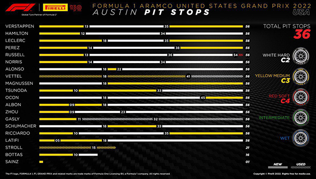 После финиша Гран При США в Pirelli опубликовали информацию о порядке смены шин на дистанции...