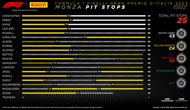 После финиша Гран При Италии в Pirelli опубликовали информацию о порядке смены шин на дистанции...