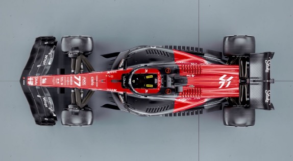 Впрочем, это не помешало всем оценить, что выглядит она действительно впечатляюще. У команды новый титульный партнёр, компания Stake, и это сказалось на выборе цветовой гаммы – она стала красно-чёрной. Оформление машины было разработано специалистами центра дизайна Alfa Romeo Centro Stile.