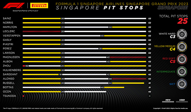 После финиша Гран При Сингапура в Pirelli опубликовали информацию о порядке смены шин на дистанции...