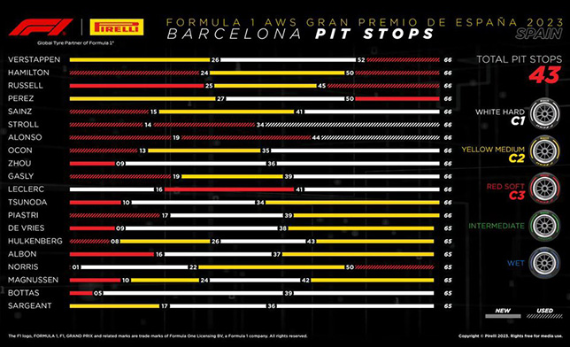 После финиша Гран При Испании в Pirelli опубликовали информацию о порядке смены шин на дистанции...
