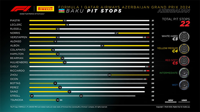 После финиша Гран При Азербайджана в Pirelli опубликовали информацию о порядке смены шин на дистанции...