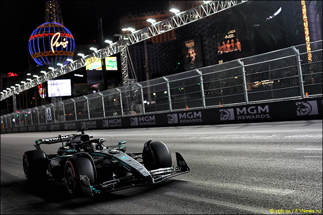 Все тренировки в Лас-Вегасе прошли в разных условиях. В первой сессии асфальт на городской трассе был грязным и скользким, во второй появился слой отработанной резины и сцепление чуть улучшилось, а перед третьей прошёл дождь и гонщики выехали на промежуточных шинах.