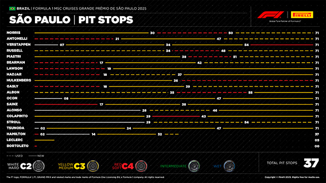 После финиша Гран При Сан-Паулу в Pirelli опубликовали информацию о порядке смены шин на дистанции:
