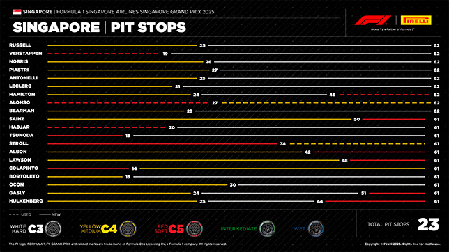После финиша Гран При Сингапура в Pirelli опубликовали информацию о порядке смены шин на дистанции: