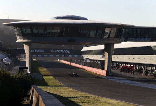Слушать в Хересе очень удобно. Я поднимался на крышу здания боксов каждый день. Выражение "как на ладони" существует как раз для таких случаев - c крыши видно практически всю трассу. То, что Формула 1 до сих пор приезжает сюда на тесты, здорово не только потому, что в Хересе очень легко выбрать подходящий жидкий сувенир друзьям, любящим невзначай подметить: "Ну вот, был в Шанхае, а китайского ничего не привез". В Хересе помимо Хереса есть ещё и эта замечательная крыша.