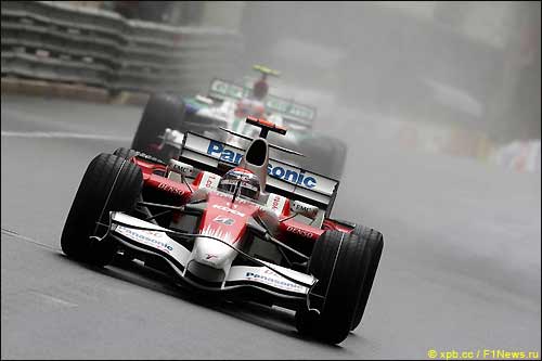 Ярно Трулли: Мы стартовали на стандартных дождевых шинах, но продолжало лить, ехать было очень трудно, поскольку машина не держала трассу. И тогда мы приняли решение перейти на резину для сильного дождя. Сначала все шло отлично, я был быстр и совершил несколько обгонов, хотя и продолжал терять время из-за трафика. Но когда осадки прекратились, начались проблемы, поскольку теперь трасса больше подходила для промежуточных шин. На первом плановом пит-стопе мы вернулись к стандартной дождевой резине, но к этому моменту я уже потерял слишком много времени. Даже если ты быстр, в Монако обгонять невозможно. Трасса продолжала подсыхать, и уже можно было ставить слики: под конец гонки я проходил круги с неплохим временем, но было уже поздно.