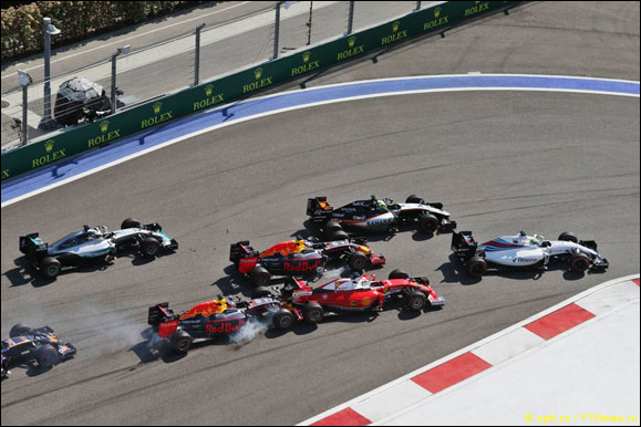 Себастьян Феттель: Думаю, вы видели больше, чем я. Но я тоже только что посмотрел запись – по-моему, всё предельно ясно. Я получил сильный удар. Сначала удалось избежать разворота, но затем я получил ещё один сильный удар, на этот раз машину развернуло и я не смог избежать столкновения с барьером.