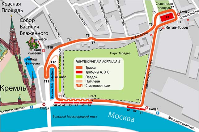 Первый в истории российский этап Формулы Е Moscow ePrix пройдет по городской трассе у стен Кремля. Всех обладателей билетов ждет развлекательная зона eVillage и автограф-сессии. Зрительские зоны разделены на участки, в каждом из которых болельщики смогут наблюдать за соревнованиями с различных трибун.