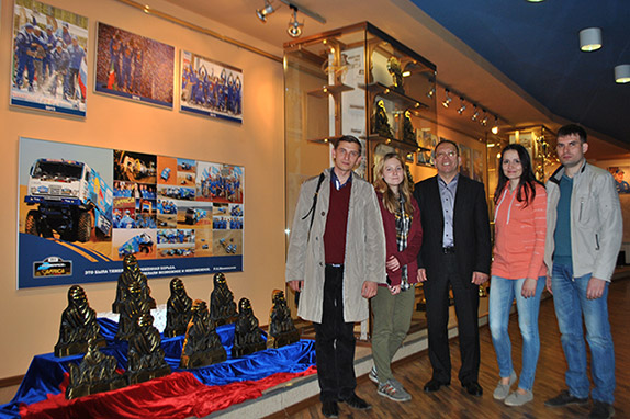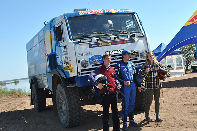 На прошлой неделе победители конкурса, Анастасия Белугина, Андрей Ярлыков и Эльвира Сабирова, наконец, получили заслуженную награду. Сначала они побывали на полигоне команды в Тарловке, что неподалёку от Набережных Челнов. Гонщик команды, Антон Шибалов, прокатил их на боевой машине КАМАЗ-4326 по тренировочной трассе, что стало для участников, безусловно, самым ярким событием поездки.