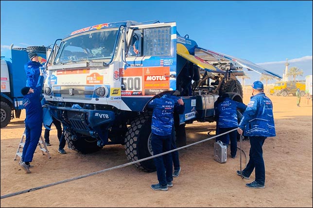Гонка в Саудовской Аравии с самого начала складывалась для экипажа Эдуарда Николаева непросто, а на прошлом пятом этапе машина остановилась на 165 километре из-за поломки мотора. Вчера мотор удалось починить, заменив прокладку блока цилиндров – и продолжить движение, но сегодня он отказал вновь.