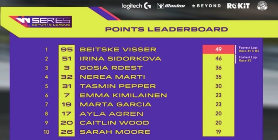 К сожалению, реальных гонок W Series в 2020 году мы не увидим, вместо этого участницы серии померяются силами в киберспорте, и первый этап виртуального турнира состоялся в четверг. Он состоял из трёх гонок на автодроме в Монце, и победы в двух из них одержала Бейтске Виссер, прошлогодняя вице-чемпионка W Series. Она выиграла первую и третью гонку, причём в обоих случаях записала на свой счёт лучшие круги, за которые тоже даются дополнительные очки.