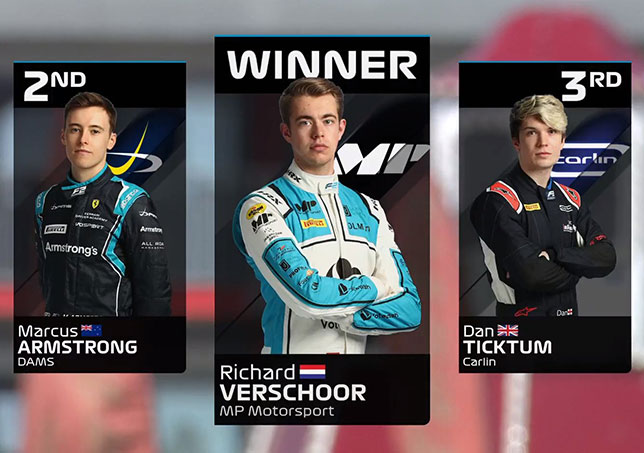 | 3. Д.Тиктум | Carlin | +2.350 |