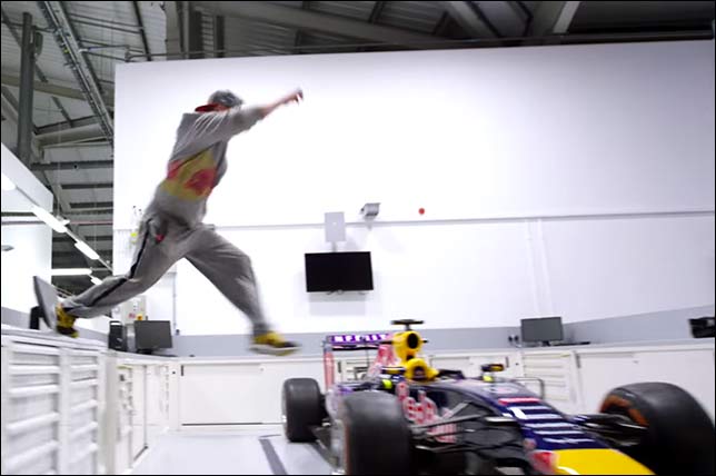 Пресс-служба Red Bull Racing опубликовала любопытное видео, в котором неоднократный призер Red Bull Art of Motion, чемпион по фрирану Райан Дойл демонстрирует своё мастерство на базе команды в Милтон-Кинс.