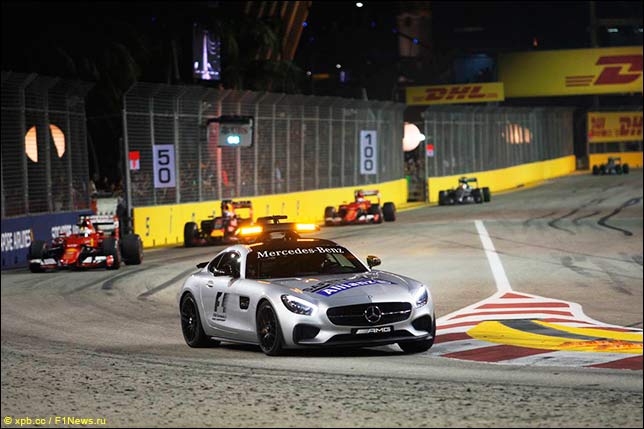 Во время Гран При Сингапура автомобиль безопасности дважды сдерживал гонку, и во второй раз это произошло после появления на трассе постороннего человека, который пролез через ограждение, прошел вдоль трассы в 13-м повороте, а потом исчез из виду.