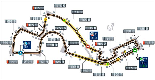 Первая точка замера интервала между машинами находится на входе в первый поворот, вторая – на входе в десятый. Если отставание в этих точках окажется меньше секунды, гонщик находящейся позади машины сможет изменить положение управляемого элемента заднего антикрыла.