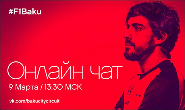 Мы хотим напомнить, что в рамках визита Фернандо Алонсо в Баку гонщик McLaren Honda 9 марта в 13:30 по московскому времени проведет чат с болельщиками и ответит на вопросы из социальных сетей. Трансляция пройдёт на официальной странице Baku City Circuit в сети Вконтакте и официальном сайте организаторов Гран При Европы.