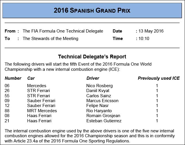 Утром в пятницу в FIA подтвердили смену элементов силовых установок на девяти машинах.