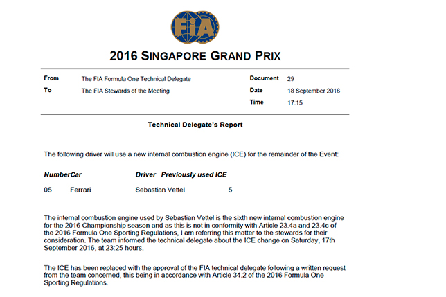 После неудачной квалификации для Себастьяна Феттеля в Ferrari приняли решение заменить силовую установку и коробку передач на машине немца. С утра FIA официально подтвердила, что гонщик Скудерии получит новый двигатель внутреннего сгорания, турбину и MGU-H.