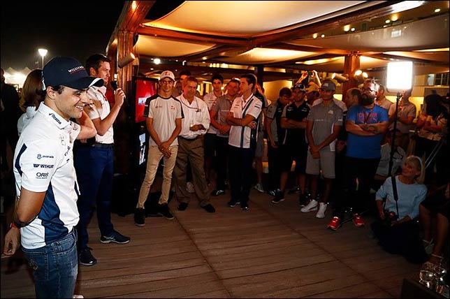 Перед 250-й и последней гонкой в карьере Фелипе Массы в Williams устроили бразильцу торжественные проводы с участием гонщиков, сотрудников других команд, гостей, родственников Фелипе и журналистов.
