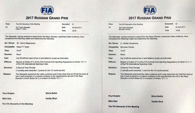Помимо этого, оба получили за это по одному штрафному баллу. Для Вандорна это первое подобное наказание за 12 месяцев, а вот на счету Магнуссена уже 5 баллов.
