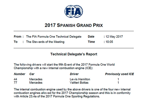 Перед началом первой тренировки Гран При Испании сразу шесть пилотов получили новые элементы силовых установок. В центре внимания оказались пилоты заводской команды Mercedes, получившие новый двигатель внутреннего сгорания, турбину, MGU-H и MGU-K. Это связано с плановой модернизацией силовой установки.