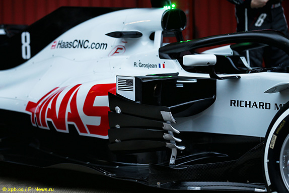 В 7.40 утра по местному времени на пит-лейн трассы в Барселоне гонщики Haas Роман Грожан и Кевин Магнуссен сорвали символическое покрывало с VF18, новой машины американской команды.
