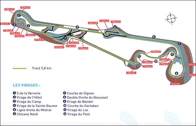 Предстоящий Гран При пройдёт по традиционной 5,8-километровой версии трассы в Ле-Кастелле, но несколько поворотов доработали с учётом возросших скоростей машин Формулы 1.