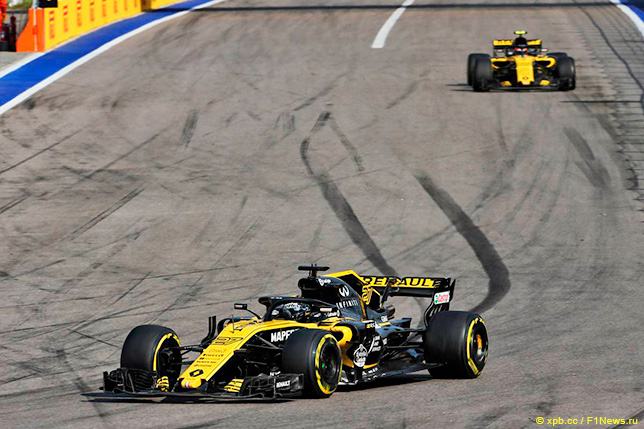 В Renault очень надеялись, что их решение не покидать боксы во второй части квалификации Гран При России даст им преимущество, но реализовать его не удалось. Нико Хюлкенберг неплохо смотрелся в первой части гонки, но после пит-стопа, получив шины UltraSoft, не имел возможности атаковать, так как ему пришлось экономить топливо. А машина Сайнса получила повреждения ещё на первом круге гонки…