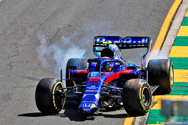 Вскоре после того, как машины впервые в 2019 году отправились на трассу Гран При и показали первое время в официальной сессии, произошла и первая в сезоне авария. Пилот Toro Rosso Александер Элбон не удержал машину на трассе и врезался в барьер. Сессия была остановлена, хотя шасси не получило значительных повреждений и Элбон вернулся в боксы своим ходом.