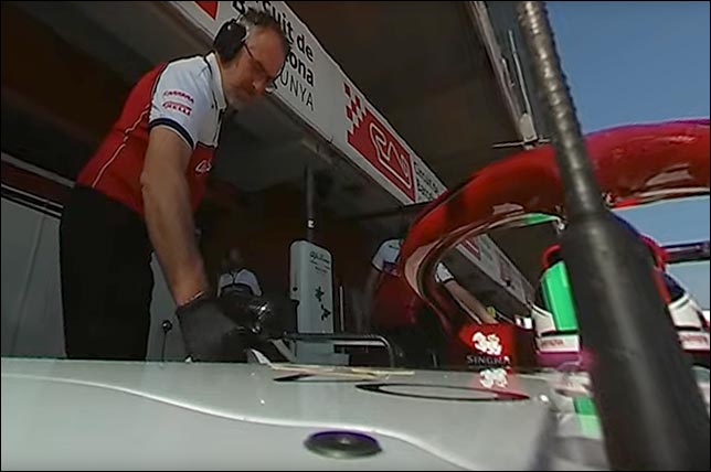 Пресс-служба Alfa Romeo прислала видеоролик, снятый на тестах в Барселоне 360-градусной камерой на машине Антонио Джовинацци. Картинку можно тянуть в сторону мышкой, чтобы изменить угол зрения.