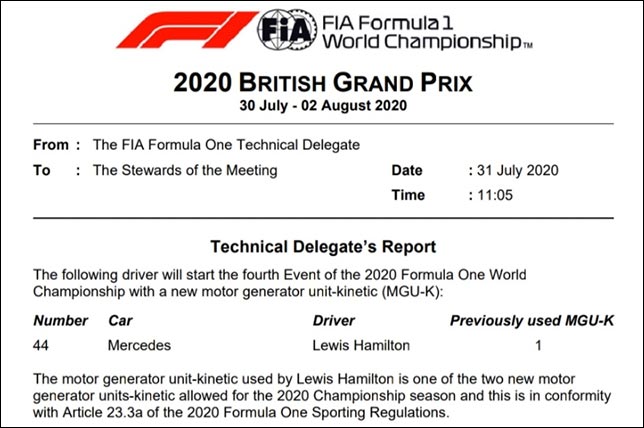 Никаких санкций за это не последует, но это второй MGU-K из двух разрешенных на сезон, так что следующая замена приведёт к штрафу.