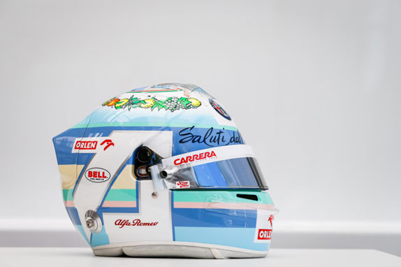 Антонио Джовинацци к домашней гонке полностью сменил раскраску: в этот уик-энд на нём будут голубые, синие, белые, песочные и розовые полосы. На макушке шлема появился силуэт Апеннинского полуострова в венке из фруктов – и изображение девушки. Кроме того, в задней части шлема появилось шутливое изображение гонщика в образе пчелы. Над визором написано: «Saluti dall’Italia» (Привет из Италии»)