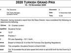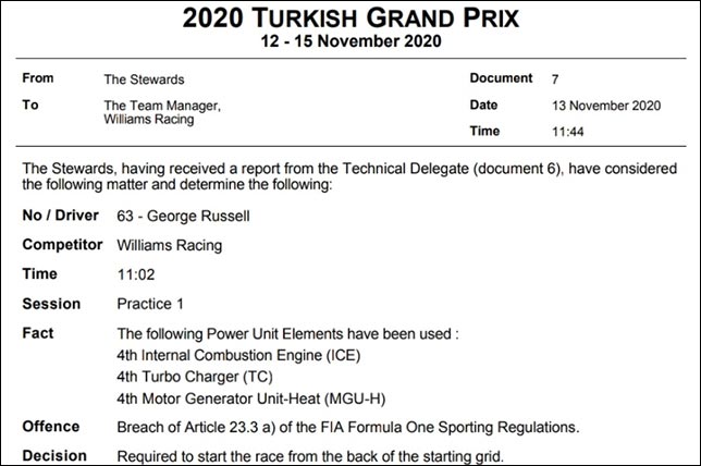 Получив сообщение от FIA, стюарды вынесли традиционное в таких случаях наказание – старт с последнего ряда стартового поля.