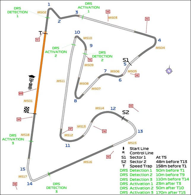 Как и в прошлом году, на трассе в Бахрейне будут три независимых зоны DRS.