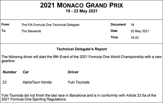 В FIA подтвердили замену коробки передач на машине Юки Цунода после второй тренировки.