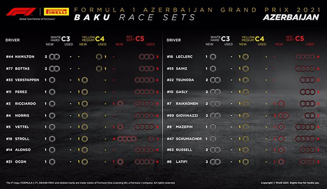 Перед стартом Гран При Азербайджана пресс-служба Pirelli опубликовала информацию об оставшихся у гонщиков комплектах шин…