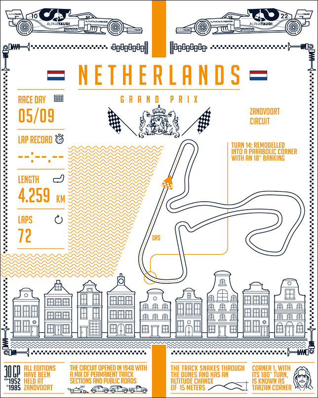 Вчера мы рассказывали о наборе постеров, посвящённых Гран При Нидерландов, которые подготовила команда Alpine F1, но в AlphaTauri решили от неё не отставать.