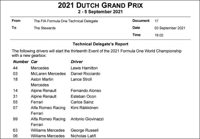 Для Льюиса Хэмилтона, Даниэля Риккардо, Лэнса Стролла, Фернандо Алонсо, Эстебана Окона, Карлоса Сайнса, Кими Райкконена, Антонио Джовинацци, Джорджа Расселла и Николаса Латифи это плановые замены – коробки на их машинах проехали положенные по регламенту шесть Гран При.