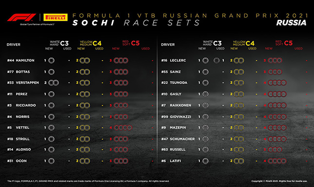 Перед стартом Гран При России пресс-служба Pirelli опубликовала информацию об оставшихся у гонщиков комплектах шин…