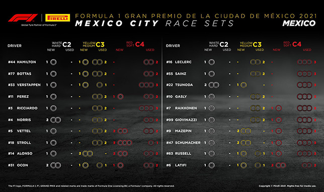 Перед стартом Гран При Мехико пресс-служба Pirelli опубликовала информацию об оставшихся у гонщиков комплектах шин…