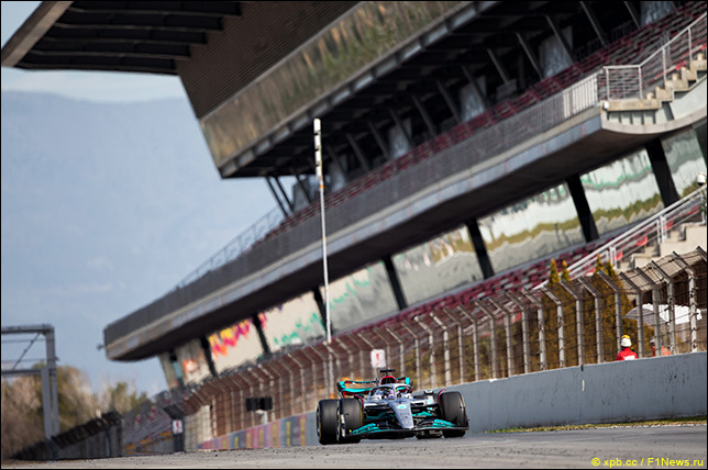 Программу Льюиса Хэмилтона во второй день тестов в Барселоне пришлось сократить, но его новый напарник Джордж Расселл отработал без проблем…